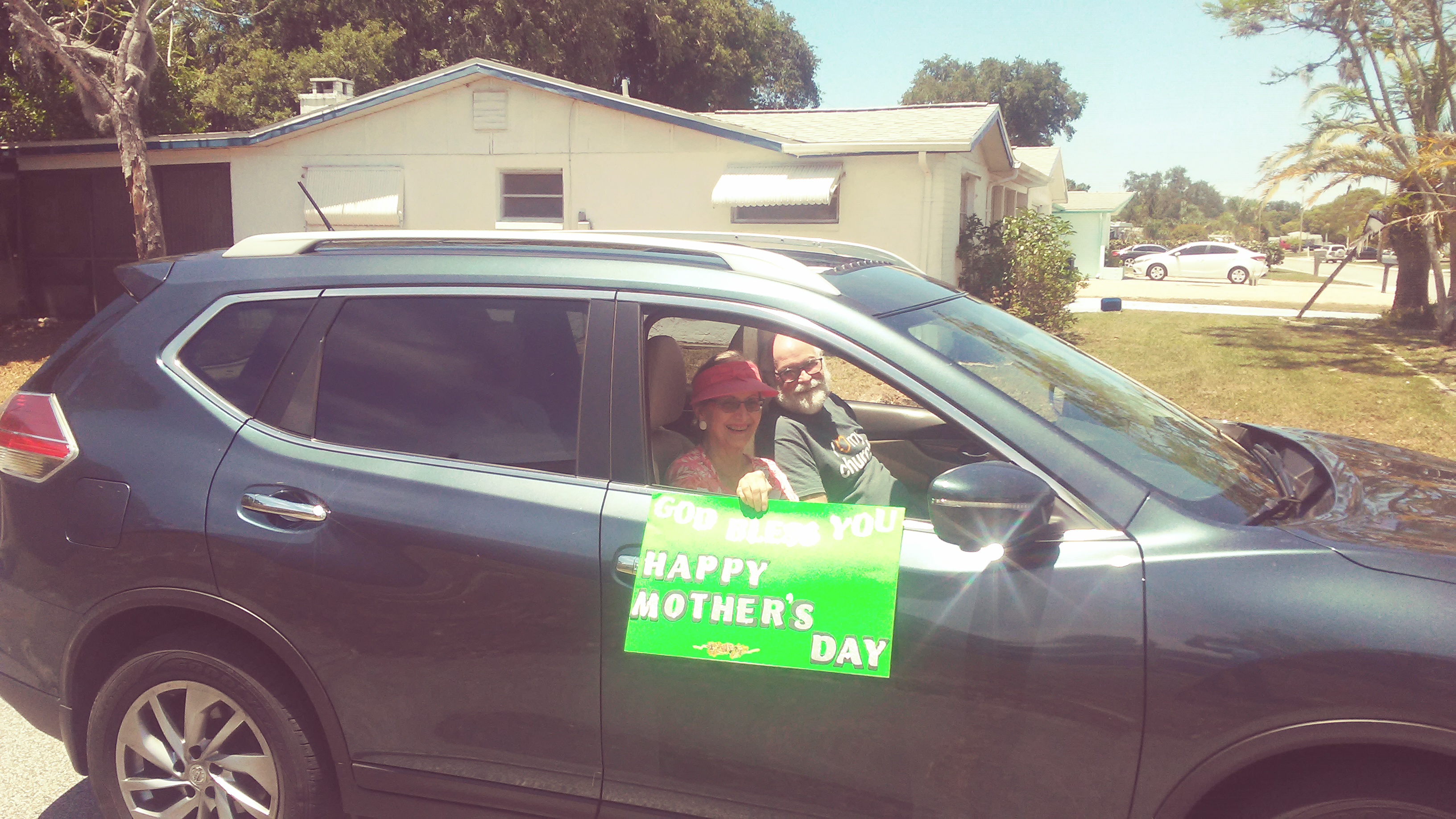 So I called one of the nursing homes that I used to visit and asked if I could bring flowers. They said no flowers unless directly from the florist (expensive!) but how about a parade? I was so amazed to see well over a hundred cars show up. People are just longing to find ways to express love and appreciation for those in long term care. I will remember this day for a long time!