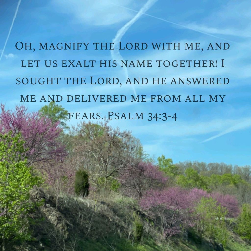 I don’t know what you are facing this morning or what fears stand in your path. This passage from Psalm 34 has been one of my go-to scriptures when I have felt overwhelmed by my own problems. I have found that after clinging to God’s words in the darkest situations that they become more precious and real the next time I face them. Have a blessed Sunday. No matter what is on your menu remember that you can still choose to bless the Lord. His daily bread is on your table and He sends it fresh out of Heaven’s oven every morning for you!