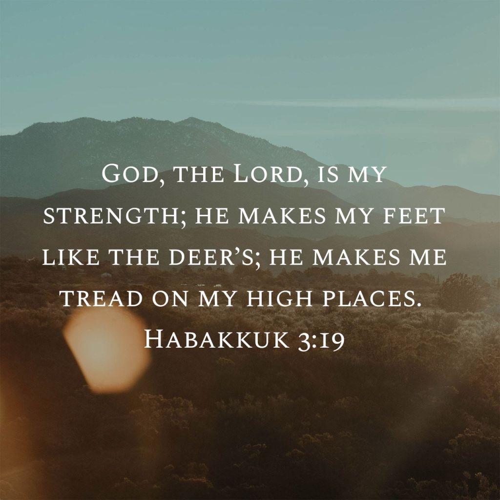 God the Lord is my strength; He makes my feet like the deer's; He makes me tread on my high places. Habakkuk 3:19 ESV