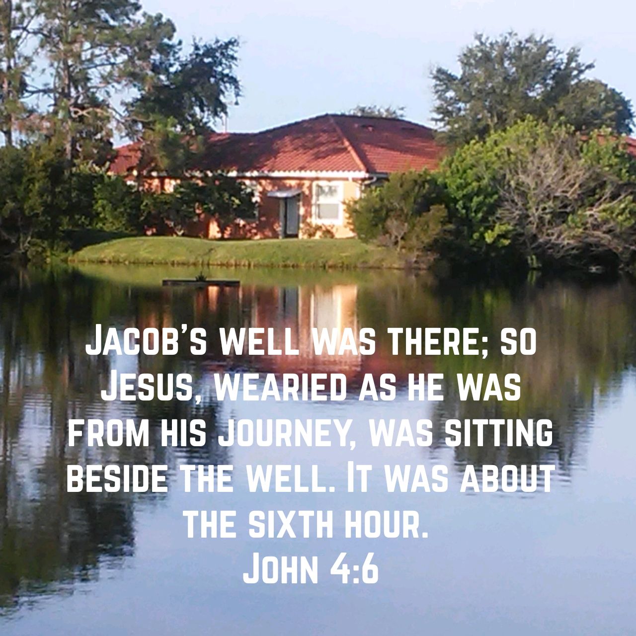 “Jacob’s Spring” was there. Jesus, tired with his journey, sat down beside it, just as he was. The time was about midday. Presently, a Samaritan woman arrived to draw some water. “Please give me a drink,” Jesus said to her, for his disciples had gone away to the town to buy food. John 4:6-8